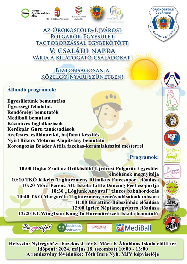 Tagtoborzással egybekötött családi napra várja az Örökösföld-Újvárosi Polgárőr Egyesület, a kilátogató családokat Nyíregyházán a Fazekas János tér 8 szám elé.