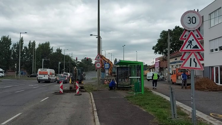 Csapadékelvezető kialakítása zajlik a Debreceni úton, a buszöböl egy részét felbontották