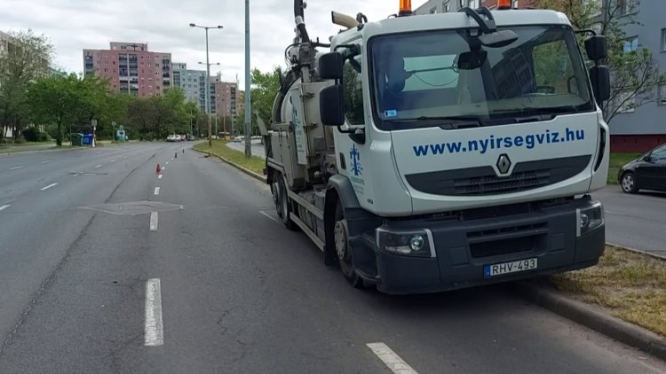 Csatornamosási és -tisztítási munkálatokat végez a Nyírségvíz a Ferenc körúton.