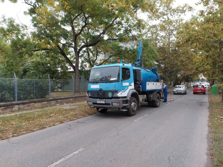 Csatornamosási munkálatokat végeznek a Stadion utcán.