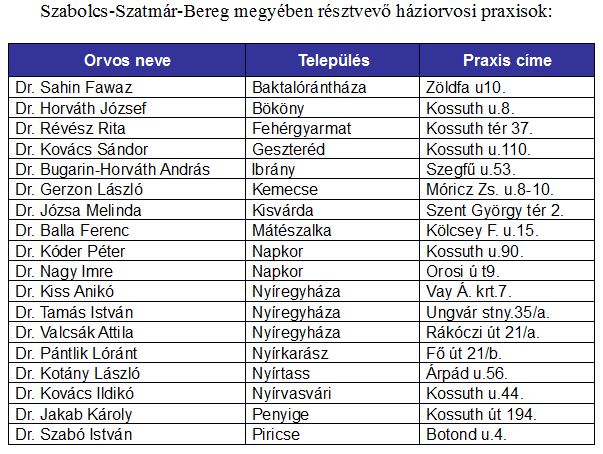 MEGYÉNKBEN 18 PRAXIS, NYÍREGYHÁZÁN 3 HÁZIORVOS CSATLAKOZOTT