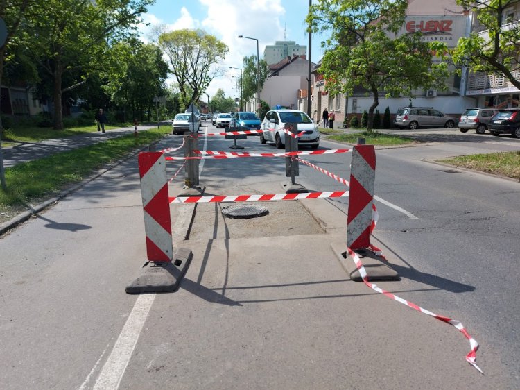 A Kossuth utca 49-51. előtt egy közműfedlapot cserélnek ki. Az erre közlekedők útszűkületre számíthatnak.