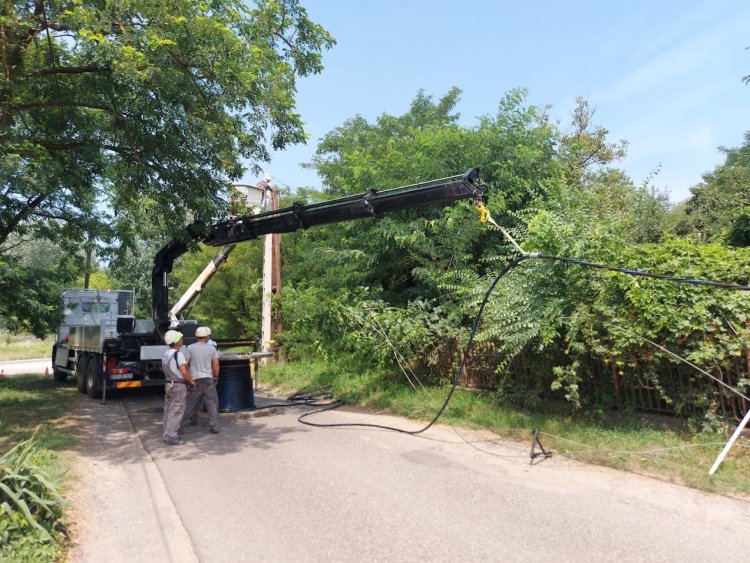Közvilágítási oszlopok és az elektromos hálózat cseréjét végzik Kistelekiszőlőben, a Kulcsár és Kilátó utcák kereszteződésében.