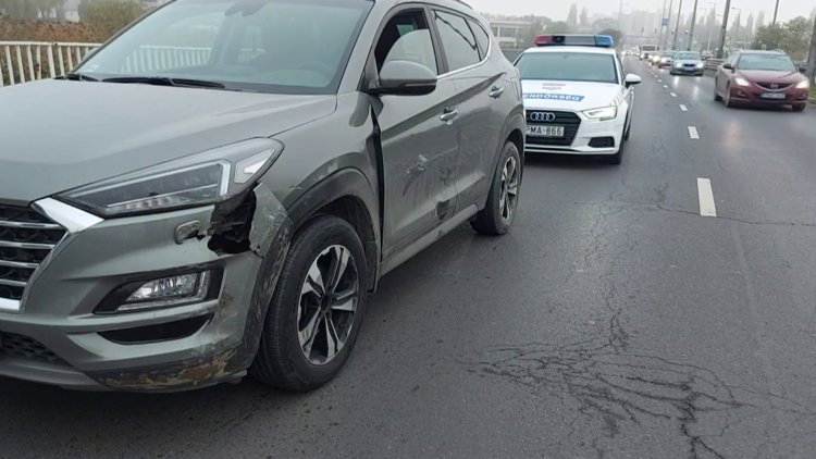 Csütörtök reggel a László utcán egy egyenesen haladó és egy sávot váltó jármű ütközött össze.