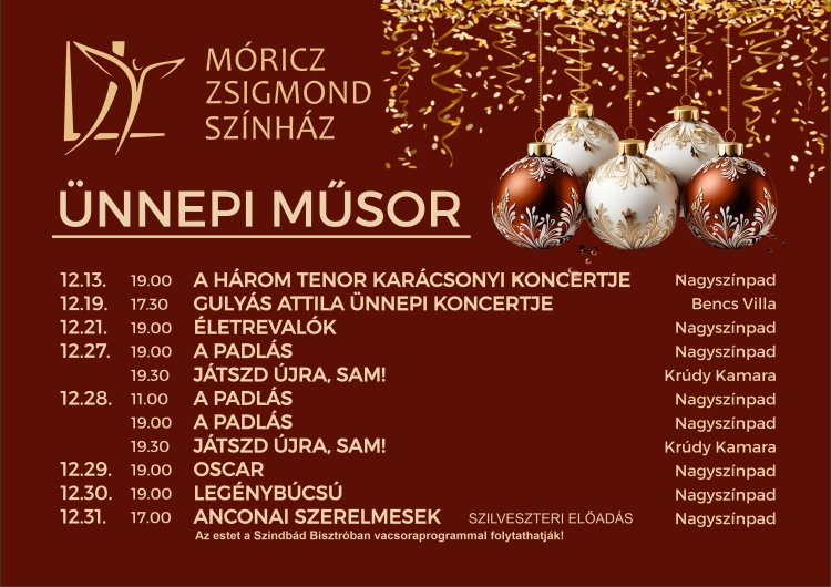Decemberben az ünnepek előtt, karácsony után és szilveszterkor is várja közönségét a Móricz Zsigmond Színház
