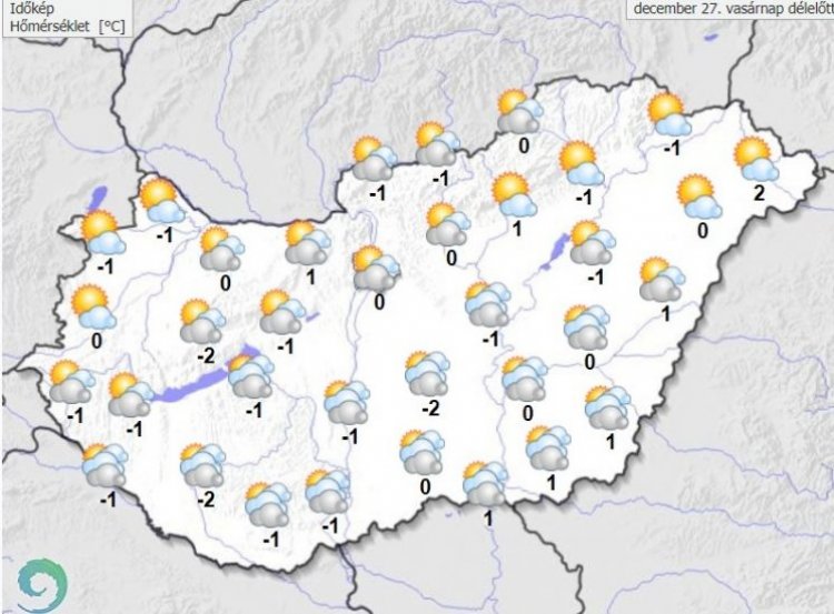 A legmagasabb nappali hőmérséklet 0 és +5 fok között alakul. Késő estére -1 és +4 fok közé hűl le mindössze a levegő.