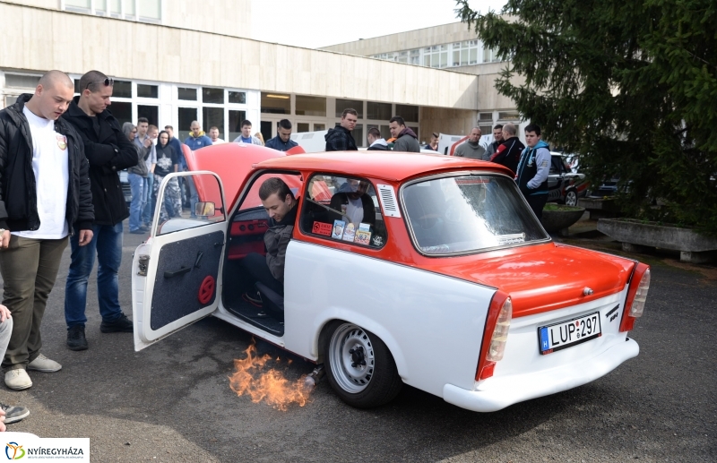 Az iskola udvarán a mai gépkocsik mellett felsorakoztak a régi Ladák, Skodák és Trabantok. Galambos Tibor, az iskola tanulója egy maga bütykölte Trabantot mutatott meg társainak.
