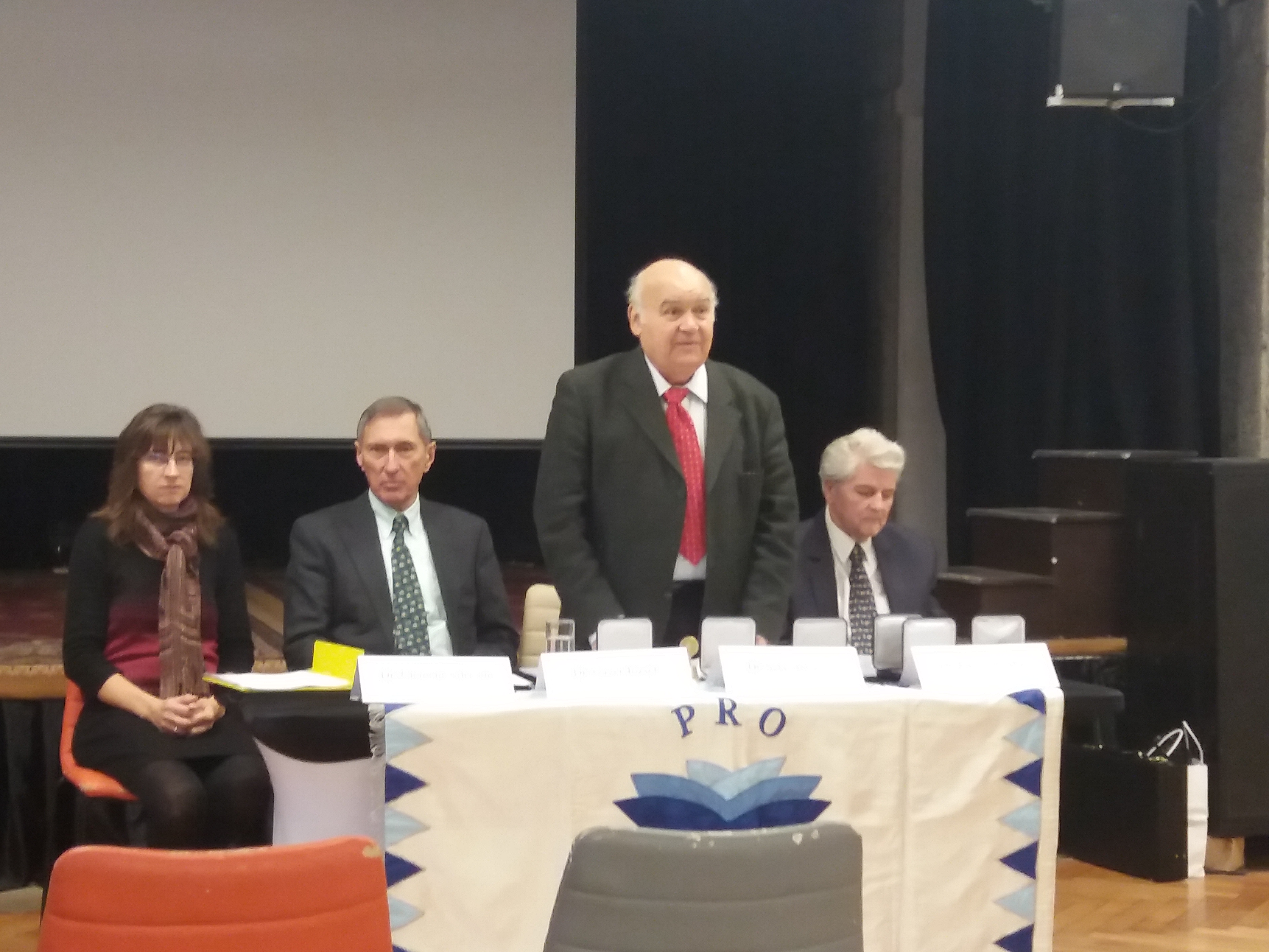 A díjazás elnöksége (balról): Clement Adrienne (Lászlóffy Woldemár pályázat bíráló bizottság titkár), dr. Gayer József (Lászlóffy Woldemár pályázat bíráló bizottság elnök), dr. Szlávik Lajos, dr. Károlyi Csaba (Sajó Elemér pályázat bíráló bizottság elnök).