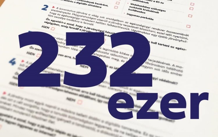 Nagyon nagy az érdeklődés a nemzeti konzultáció iránt, a szerda reggeli összesített adatok alapján már 232 ezer kérdőívet töltöttek ki a magyar emberek - mondta Dömötör Csaba, a Miniszterelnöki Kabinetiroda parlamenti államtitkára szerdai budapesti sajtótájékoztatón.