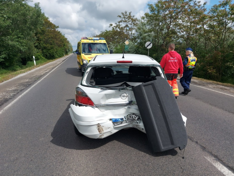 Egy személygépkocsi balra nagy ívben le akart kanyarodni a főútról, amikor egy jármű nagy sebességgel hátulról nekiment és az ütközéstől számítva 40 méterre arrébb lökte. A vétlen jármű vezetőjét kórházba szállították. A balesetben jelentős volt az anyagi kár.