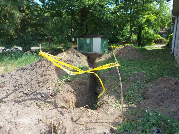 Nagyfeszültségű kábelt fektetnek a Csemete utcán.