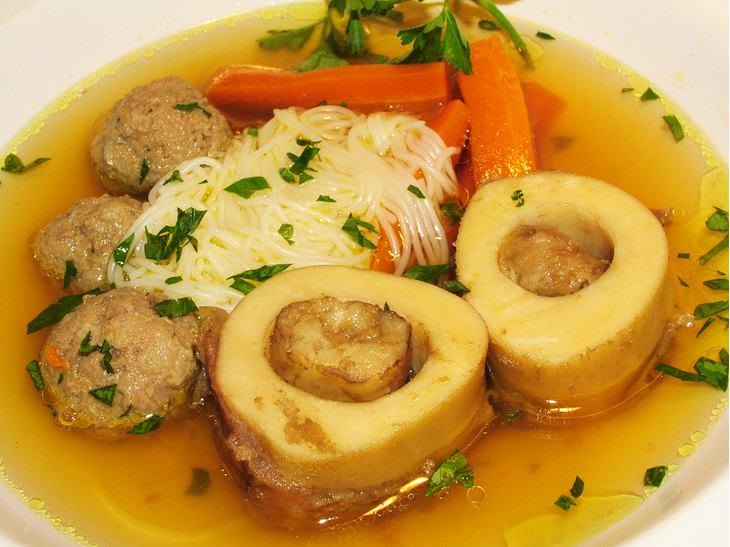 „A legszigorúbb szertartási renddel készül minden, valamire való használ spitzfartőből, szegyhúsból, marhacsontból, esetleg egy jókora velős csontból. Hideg vízbe tegyük föl, s csak szemes borssal ízesítsük. A húsleves lassan forr, mert még messzire van dél, de már megérkeznek hozzá a petrezselymek, sárgarépák, karalábék, kelkáposzták, zellerek, gombák, borsók, vereshagymák, fokhagymák, paradicsomok, piros paprikák. És a só. És már gyúrják is a májgombócot vagy hasonlót, ami majd a levesbe kerül.”
