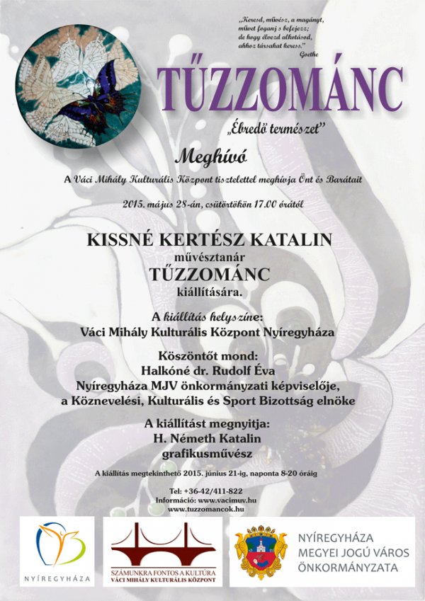 Kissné Kertész Katalin művésztanár tűzzománc kiállítása május 28-ától a Váci Mihály Kulturális Központban.