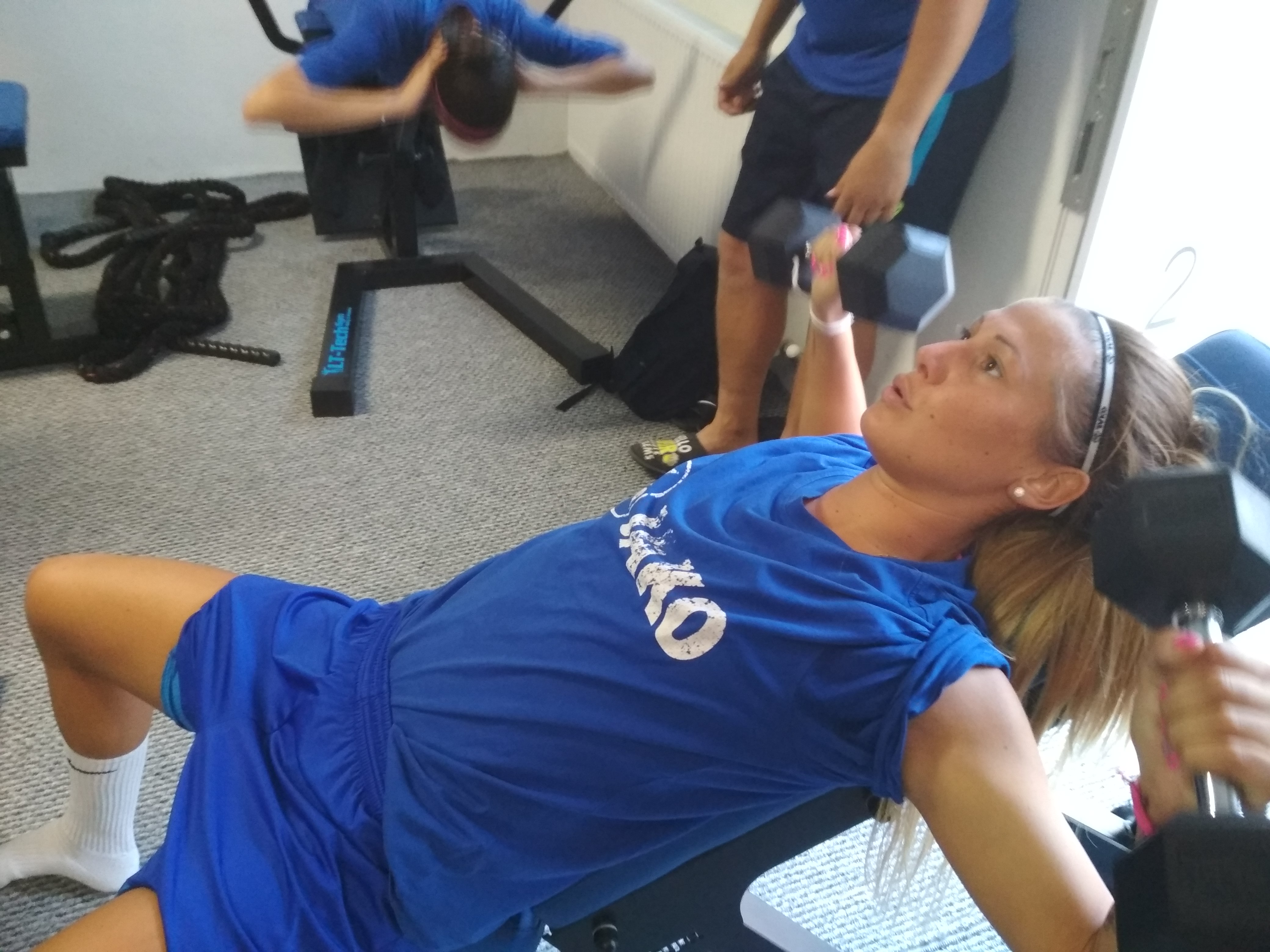 Abaújszántó, nyár, 32 fok. Itt sincs hideg. Pedig már késő délután van, a településen edzőtáborozó Nyíregyháza Spartacus női kerete túl van egy labdás edzésen, most pedig a napokban átadott konditerembe igyekeznek a játékosok.