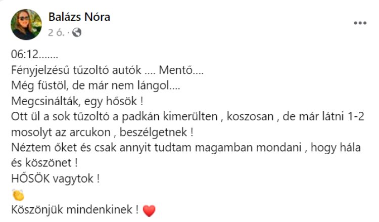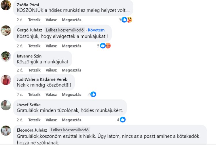 A legnagyobb közösségi portálon pedig több százan fejeztéki ki köszönetüket a tűzoltóknak. Valóban embert próbáló munkát végeztek. Köszönjük szépen!