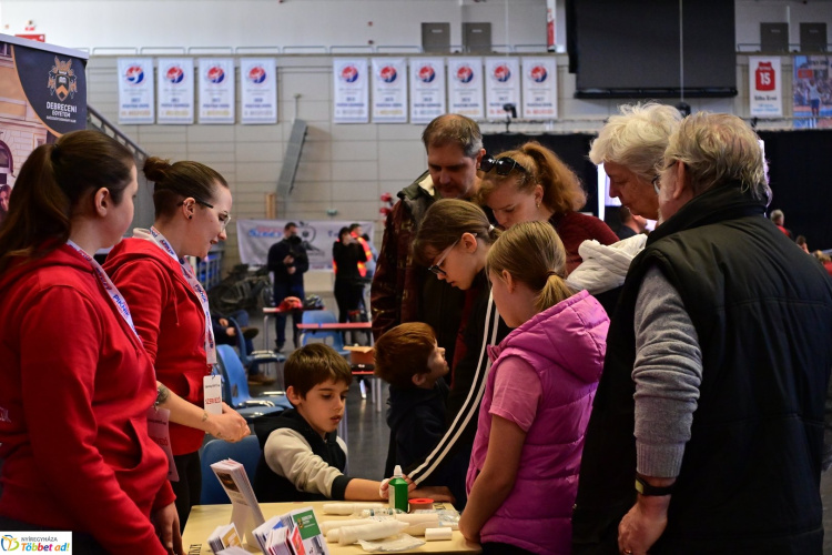 Nagyon népszerűek az újraélesztési gyakorlataink és bemutatóink. Alapvetően a mentési bemutatókkal együtt szoktuk ezt szervezni. Most maradtunk a szűréseknél, vérnyomás-, vércukor-, prosztata-, koleszterinszűrés. És mellette itt van a nagyon népszerű újraélesztési bemutatónk. A bajtársaink bemutatják a fiataloknak, megtanítják őket egy gyorsabb képzés keretein belül. Nagyon sokan jönnek, fiatalok, idősebbek is beállnak és nyomják a babákat. Ez nagyon fontos, mert a bajbajutott mellett az első percben a laikusok tudják ezt csinálni, és ha jól végzik, akkor ez valóban életeket menthet”