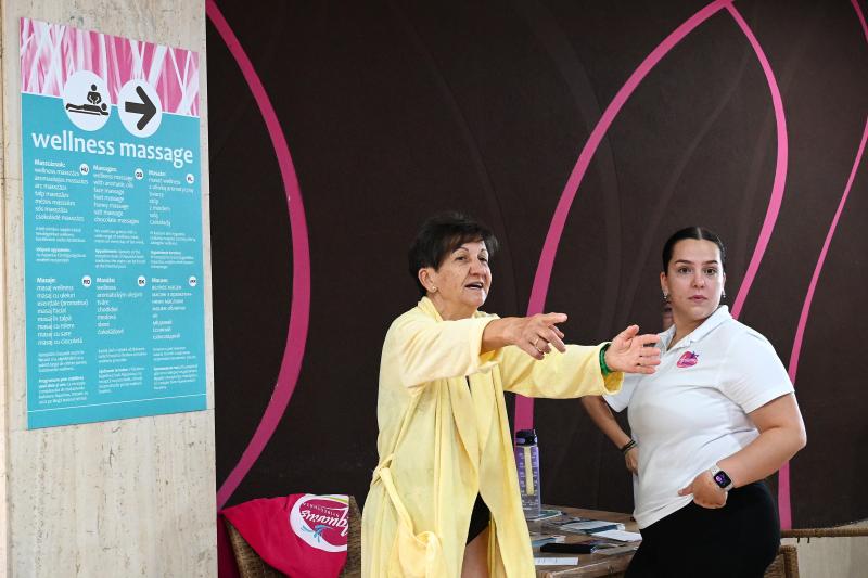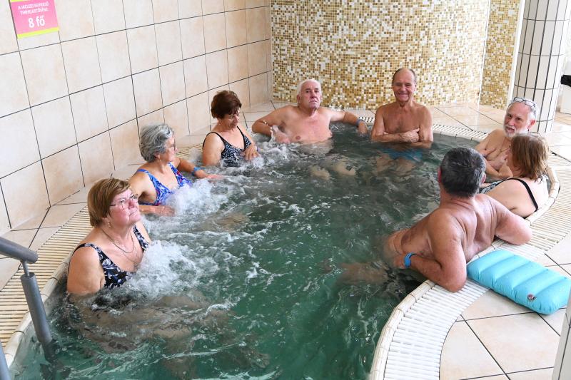 „Orvosi beutaló nélkül lehet részt venni különböző kezeléseken, ráadásul ezek a kedvezményes belépőjegy árában benne vannak. Így nem kell külön sorban állni vagy időpontot kérni ahhoz, hogy valaki igénybe vehesse ezeket a szolgáltatásokat. A mai nap folyamán valószínűleg kipróbálom a vízi tornát, az érvizsgálatot, valamint a hátmasszázst is”