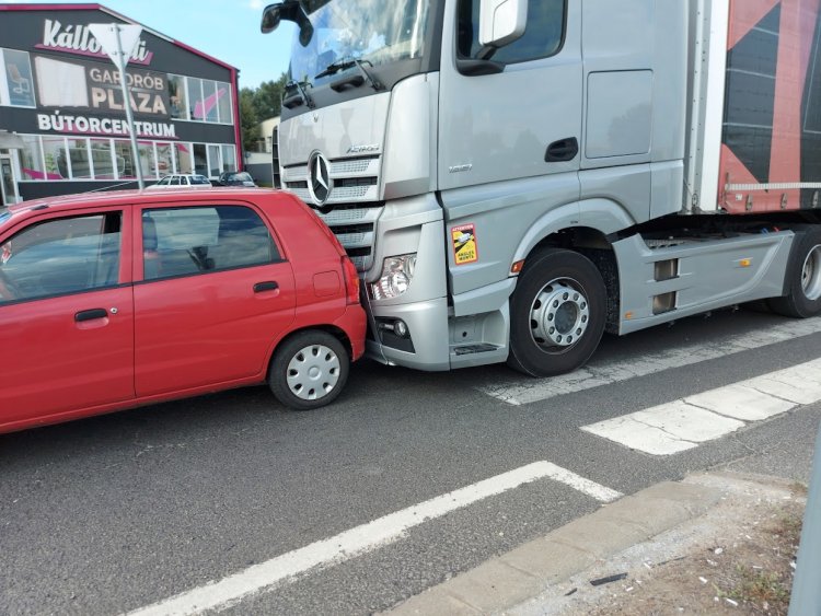 Egy álló autónak ütközött egy kamion hétfőn reggel a Kállói úton