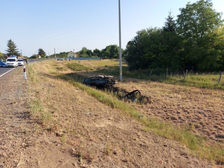 Egy autó megsodródott, az árokba csúszott és felborult a nyugati elkerülőn