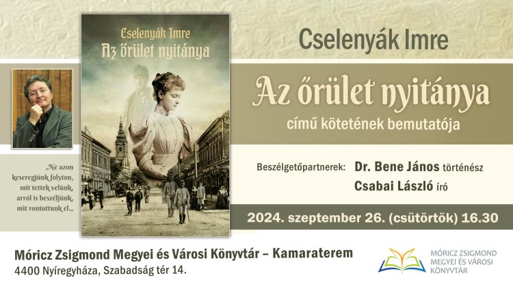 Bemutatják Cselenyák Imre: Az őrület nyitánya című kötetét, melyen Dr. Bene János (történész) és Csabai László (író) beszélget a szerzővel.