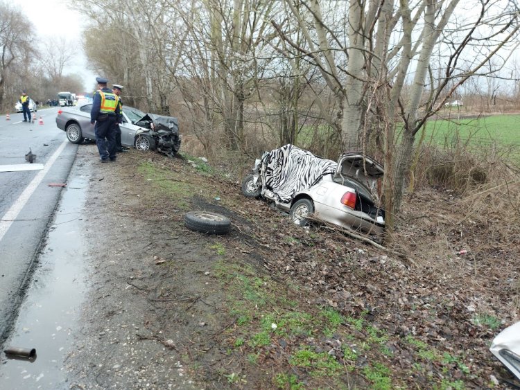 Egy személygépkocsi előzésbe kezdett és a szemben lévő sávban összeütközött egy ott szabályosan közlekedő másik autóval. A vétlen járműben utazó egyik személy meghalt, egy kiskorú életéért pedig a mentők küzdöttek. Hozzá mentőhelikoptert is hívtak, így szállították a Nyíregyházi Jósa András Tagkórházba. Rajta kívül még két személy szorult kórházi ellátásra a baleset következtében. A főút érintett szakaszán teljes útzárat rendelt el a rendőrség.