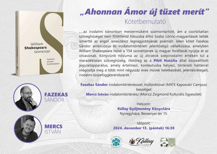 A vadonatúj műfordítást készítő Fazekas Sándorral hallhatnak beszélgetést december 13-án pénteken a Kállay Gyűjtemény könyvtárában.