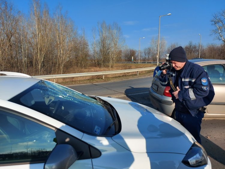 Egy nyerges vontató ponyvájáról lezuhant jégdarab törte be egy személygépjármű szélvédőjét szombaton délelőtt a 41-es főúton.