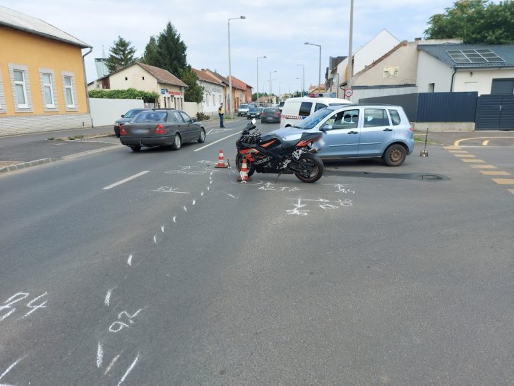 kereszteződésben.A motorost ellátást követően kórházba szállították, mindkét járműben jelentős anyagi kár keletkezett. A rendőrség eljárást indított, vizsgálja az okokat és a körülményeket.