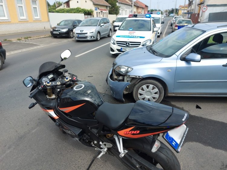 Egy motoros és egy személyautó ütközött a Debreceni út és a Szilfa utca kereszteződésében