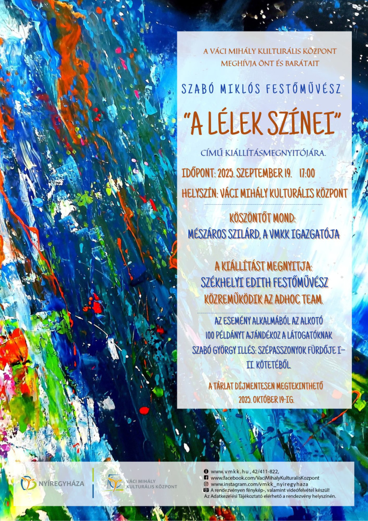 Szabó Miklós festőművész extravagáns képeivel vár minden kedves érdeklődőt a szeptember 19-én. Ekkor nyitják meg a legújabb kiállítását, amely 17 órakor kezdődik a Váci Mihály Kulturális Központ aulájában. A nem mindennapi eseményen fellép az AdHoc Team formáció.