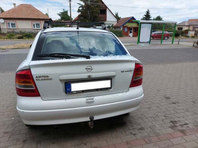 Egy személyautó vezetője tolatás közben nekiment a buszmegállónak az Alma utcánál