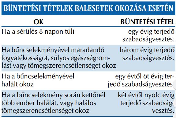 BÜNTETÉSI TÉTELEK BALESETEK OKOZÁSA ESETÉN