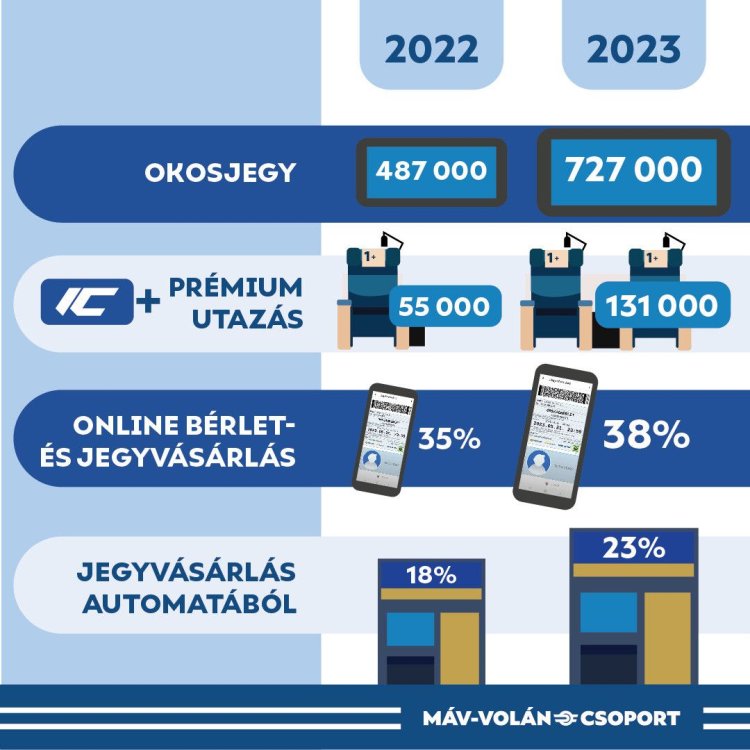 Fordulatot hozott az előző év a jegyvásárlási szokásokban is, ugyanis az online jegyváltás beérte a pénztári értékesítést, a jegy- és bérlettermékek harmincnyolc százalékát vették már az Elvirával vagy a MÁV app segítségével.