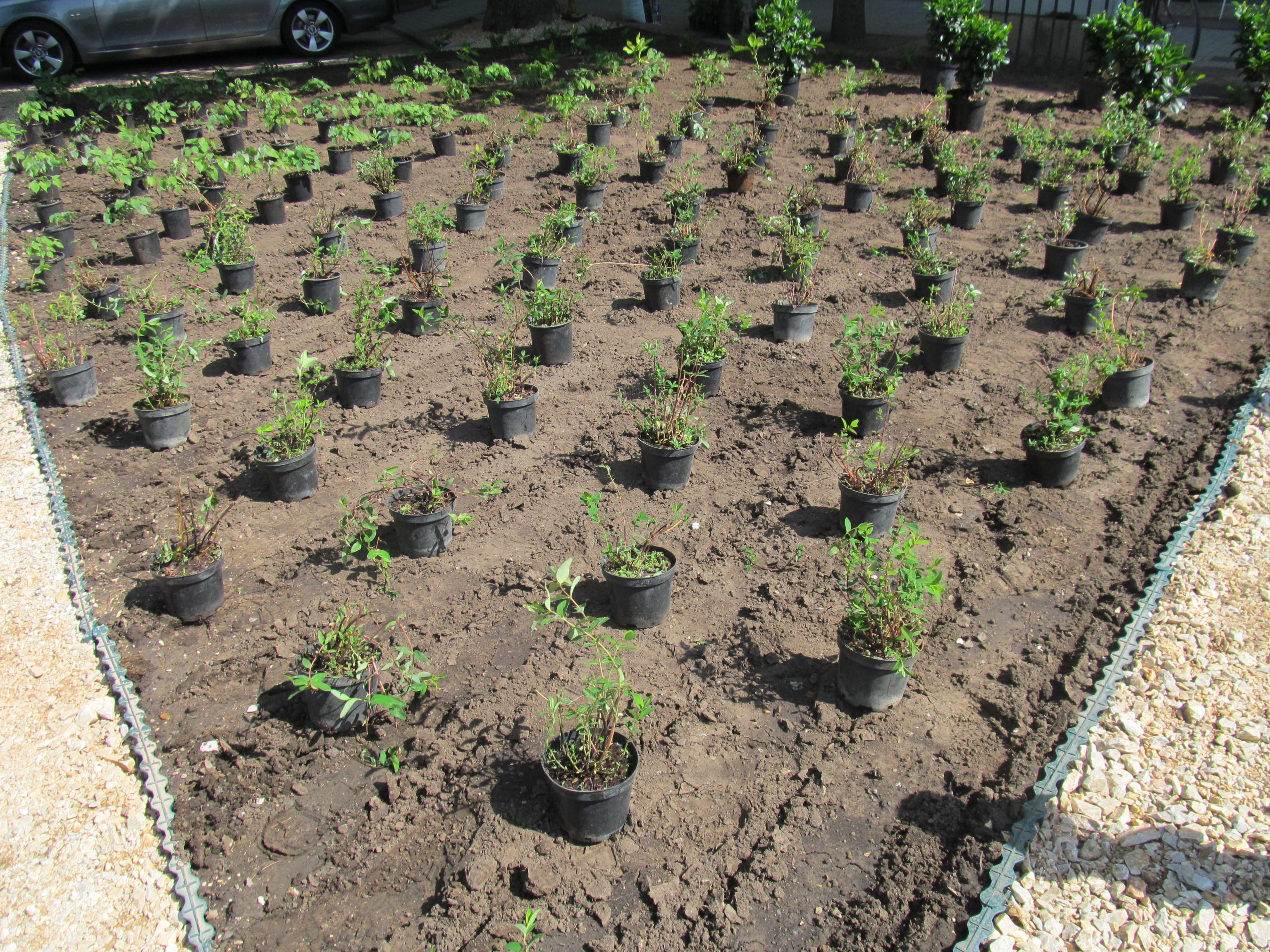 A platánfák alá árnyéki évelő kecskefüvet ültettek, a járda melletti területet nagyobb növésű örökzöld cserjék és félcserjék: babérmeggy és tarka levelű japán babérsom díszíti; illetve közel 200 darab évelő növényt, például sárga virágú tündérfürtöt és orbáncfüvet telepítettek a díszágyásba.