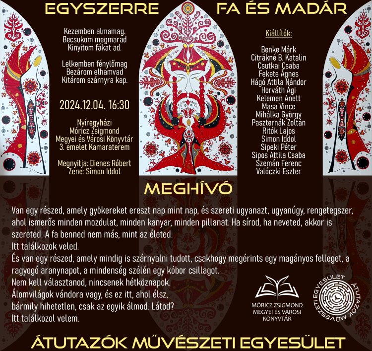 Egyszerre fa és madár, az Átutazók Művészi Egyesület alkotásaiból nyílik kiállítás a Móricz Zsigmond Megyei és Városi Könyvtár – Kamaratermében.