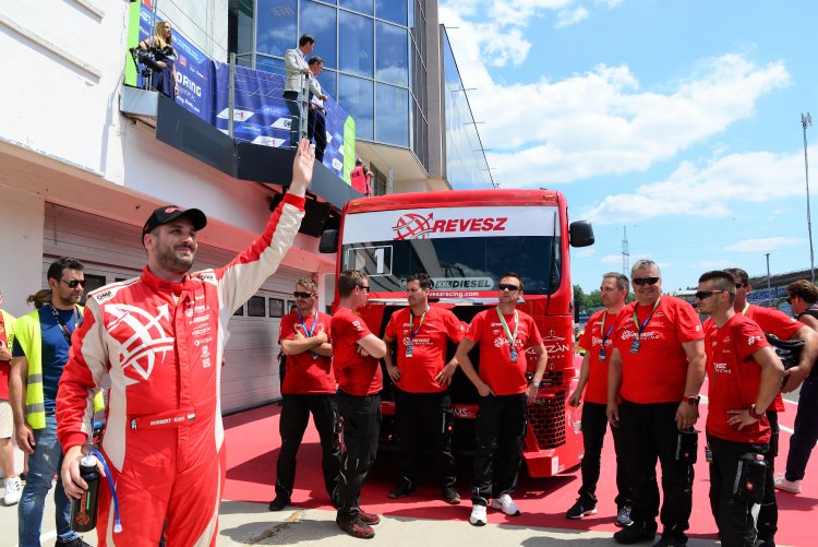 Szombaton este még az is kérdéses volt, hogy egyáltalán megjavítható-e Kiss Norbert versenykamionja. Azok után, hogy a Révész Racing pilótája megnyerte az első versenyt, a második rémálomszerű volt. A rajt utáni első kanyart követően többen is nekimentek, a versenygép pedig csúnyán megsérült. A futóművek tönkrementek, a kabinon pedig hatalmas lyuk tátongott. A csapat erejét mutatja viszont, hogy a szerelők egész éjjel dolgoztak, hogy megjavítsák a kamiont. Mindez olyan jól sikerült, hogy vasárnap már ismét Kiss Norbert volt a leggyorsabb, és az első versenyt nagy fölénnyel meg is nyerte. Kiszállva az autóból több ezren ünnepelték a lelátón, ő pedig azonnal a csapatra mutatott.