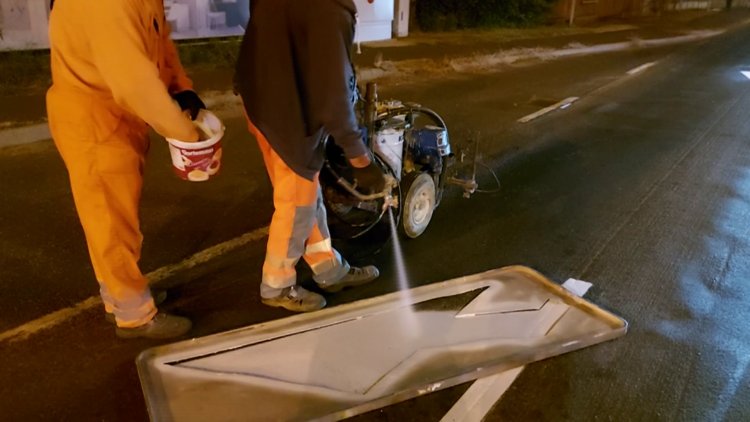 Éjszaka festettek burkolati jeleket a Debreceni úton