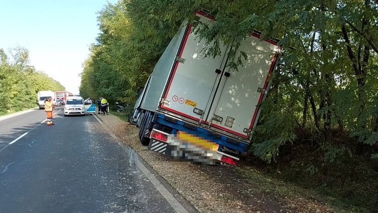 Elvesztette uralmát a jármű fölött egy kamion vezetője kedd reggel a 4-es főúton.