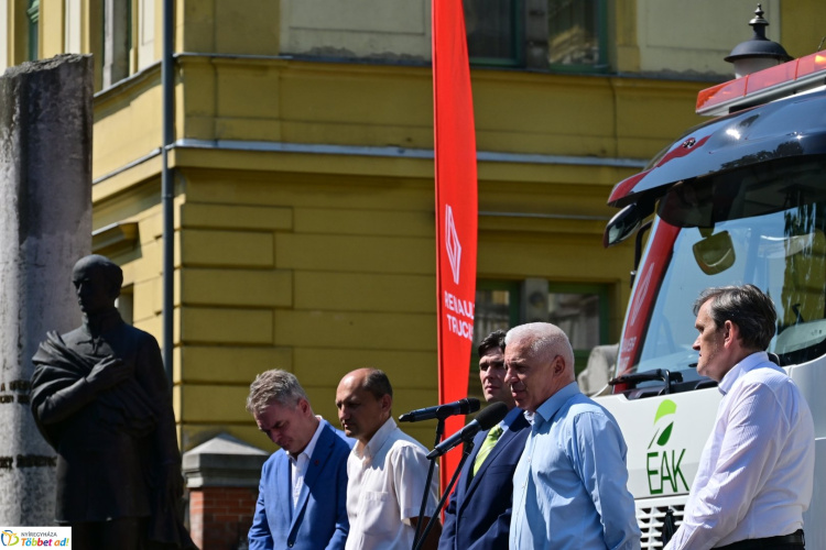 Az önkormányzat is az elmúlt 15 évet is ennek a jegyében dolgozta végig, azaz, hogy minél egészségesebb legyen a városunk. Ezek elektromos kukás autók, most itt van kettő, megbeszéltük, hogy év végéig jön még egy. Ennek a károsanyag-kibocsátása nulla gyakorlatilag és az energiafelhasználása is sokkal kevesebb. Ez ahhoz a folyamathoz kapcsolódik, amit itt, Nyíregyházán elkezdtünk a közlekedésben a CNG buszokkal”