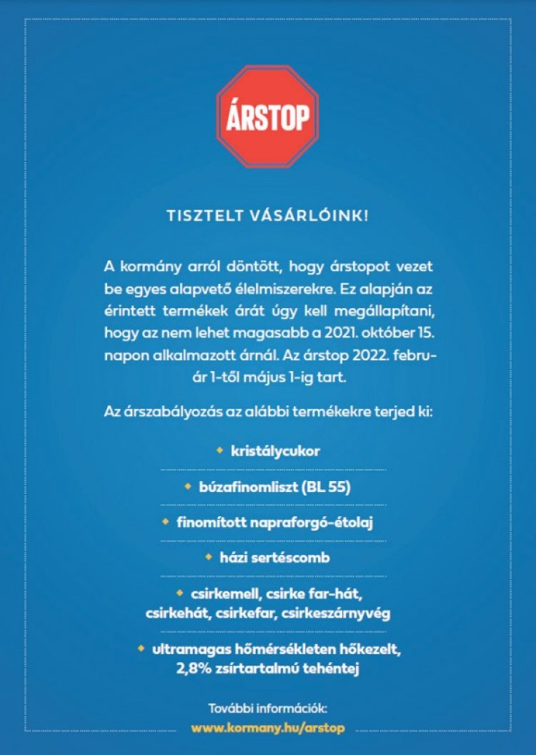 Az élelmiszerárstop célja, hogy megvédje a magyar lakosságot a járvány és az elszabadult európai energiaárak miatt hazánkba is begyűrűző élelmiszerár-növekedéstől.