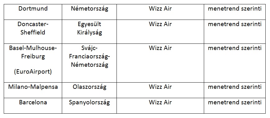 ÚJ ÚTI CÉLOK 2019. MÁRCIUSTÓL A DEBRECEN AIRPORTRÓL