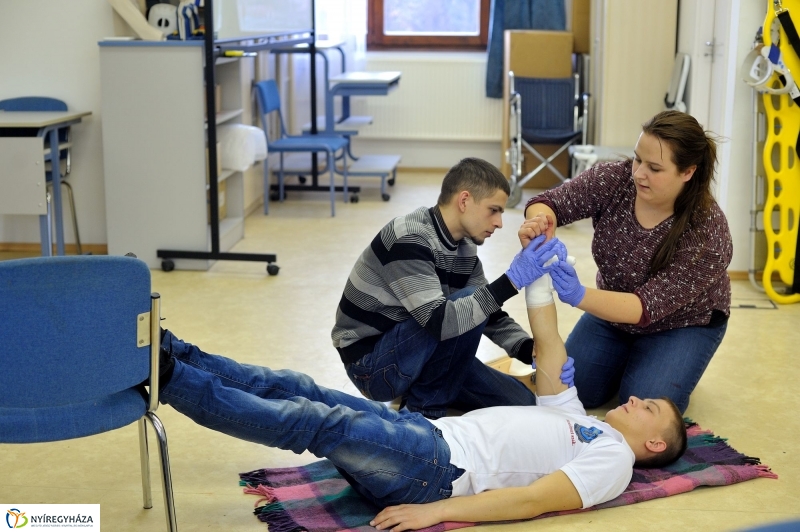 A vérzéscsillapításról tanulnak a Debreceni Egyetem Egészségügyi Karának mentőtiszt szakos hallgatói. A gyakorlati képzésen az intézményben igyekeznek a valóságot modellezni. Balesetet szimulálnak az egyik hallgató közreműködésével. A hallgatók többsége azt mondja, azért jöttek erre a pályára, mert másokon kívánnak segíteni.