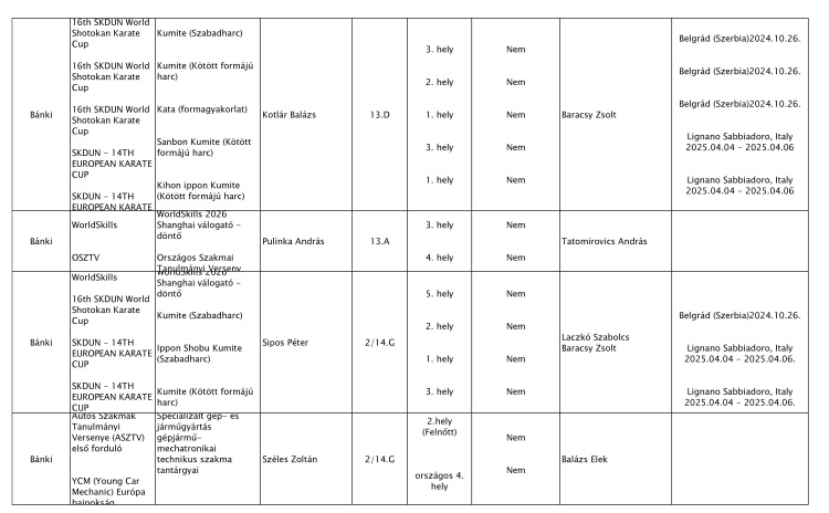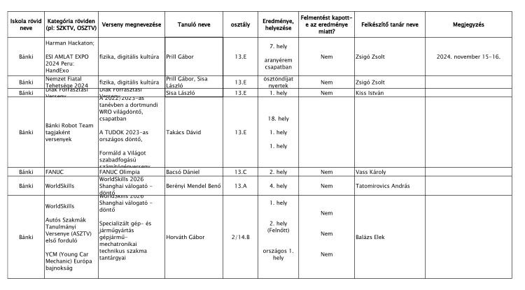A Nyíregyházi SZC Bánki Donát Technikum és Kollégium két tanulója nyerte meg az ESI AMLAT EXPO 2024 Peru: HandExo nemzetközi versenyt, és a WoldSkills Hungary 2026 Shanghai válogató döntőbe is négy Bánki-s Gépjármű-mechatronikai technikus tanuló jutott be.