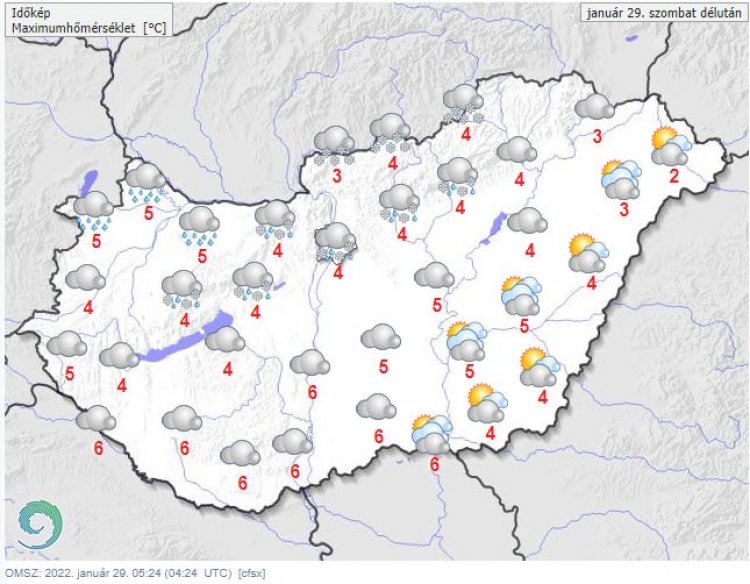 Előbb a Dunántúlon és a főváros tágabb térségében várható eső, havas eső, a hegyekben havazás. Estétől már a Dunától keletre is több helyen lehet vegyes halmazállapotú csapadék. Kelet, északkelet felé haladva növekszik a hó esélye.