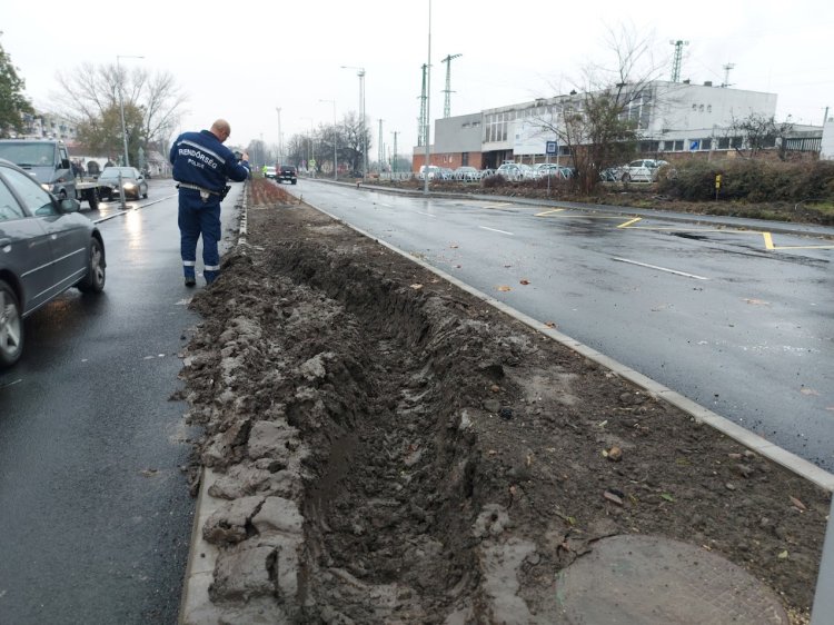 Mindezek mellett több új, frissen elkészült közműfedlapot is megrongált. A jelentős károkozást a jármű vezetője azzal indokolta, hogy a géppel nem fért el a terelőtábláktól. A 100 méteren kárt okozó gépvezetőt a rendőrség intézkedés alá vonta.
