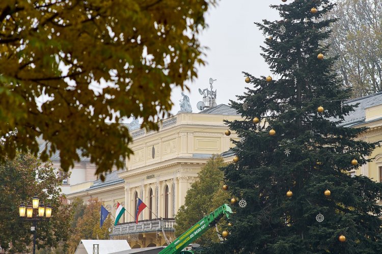 Az Adventi Forgatagot és Vásárt a járványügyi intézkedések és szabályok értelmében idén nem rendezik meg Nyíregyházán sem, azonban a város karácsonyfáját már felállították a Kossuth téren, és a NYÍRVV munkatársai elkezdték feldíszíteni a 17 méter magas feketefenyőt.