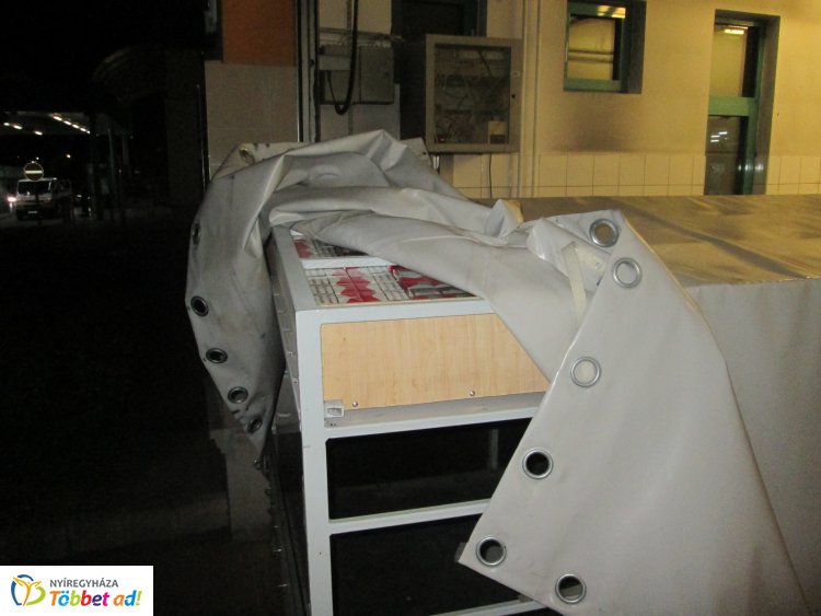 A szolgálati kutya egyértelmű jelzésére a NAV munkatársai megbontották az utánfutó tetőszerkezetét, ahonnan 8 500 doboz, 11 millió forint értékű ukrán cigaretta került elő.