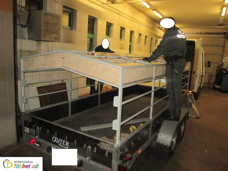 Cigarettakereső kutya segítségével találták meg a Nemzeti Adó- és Vámhivatal (NAV) munkatársai azt a közel 11 millió forint értékű csempészcigit, amit egy ukrán mikrobusz átalakított utánfutójában próbáltak meg behozni Beregsuránynál.