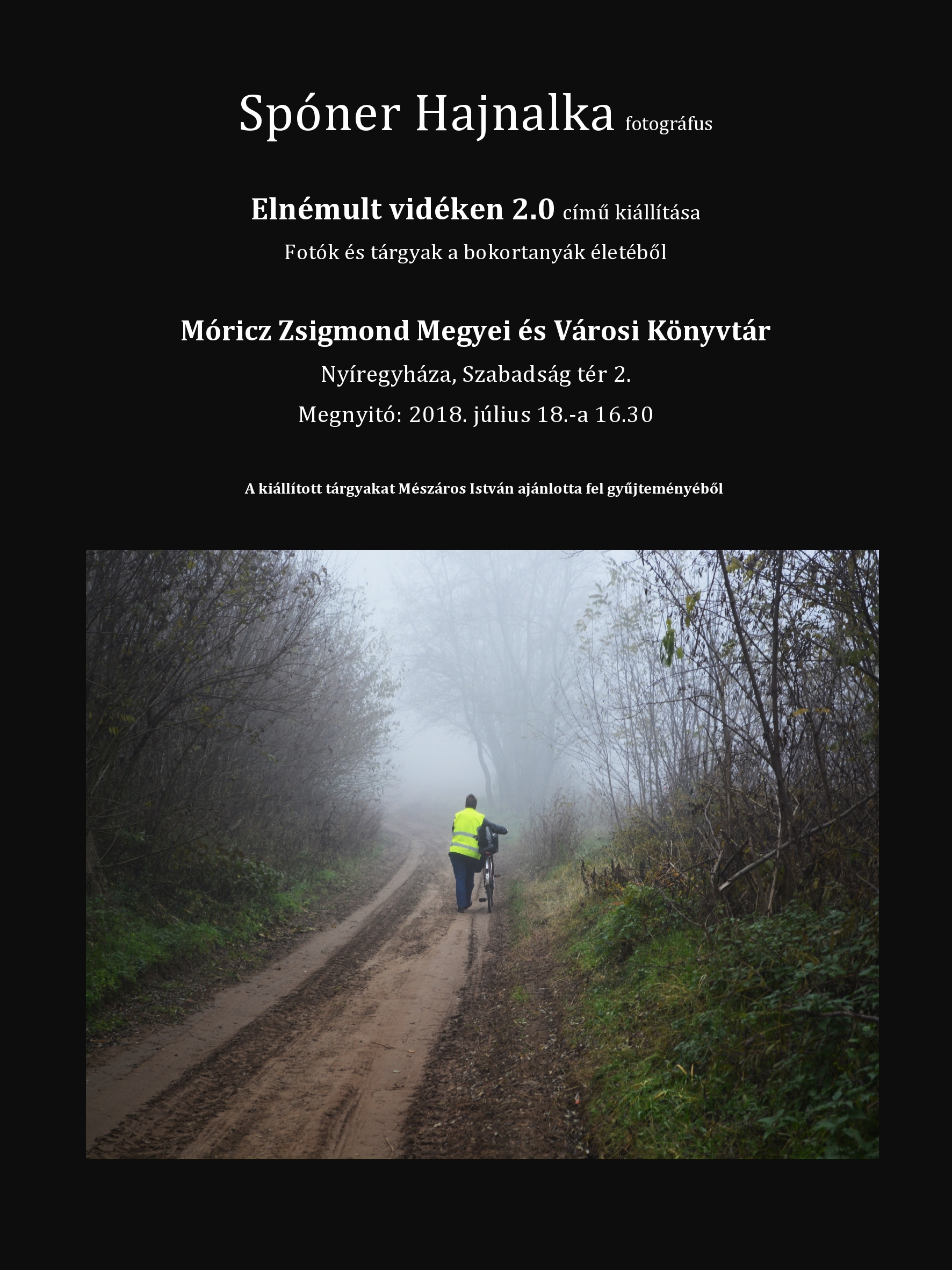 Elnémult vidéken 2.0 - Fotók és tárgyak a bokortanyák életéből címet viseli Spóner Hajnalka fotográfus kiállítása, melyet 2018. augusztus 22-ig a könyvtár nyitvatartási ideje alatt tekinthetnek meg az érdeklődők.