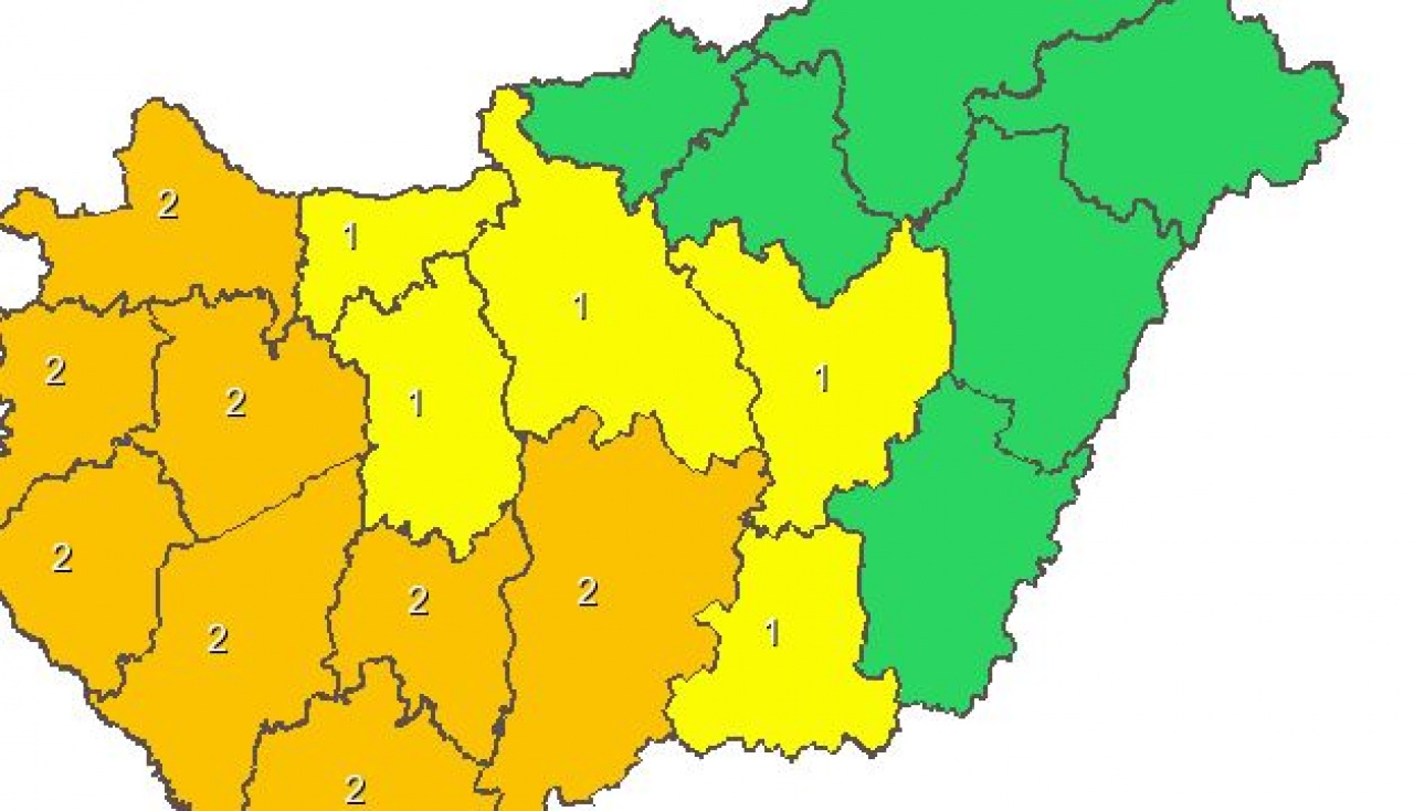 Késő délutántól, estétől viszont nyugat felől zivatarrendszer érheti el az országot. A zivatarrendszer éjfélig kb. a Tisza vonaláig juthat, nyomában viharos vagy károkozó szélrohamokra (60-90, néhol > 90 km/h), nagyobb méretű jégre (> 2-3 cm) és felhőszakadásra (> 25-30 mm) is számítani kell.
